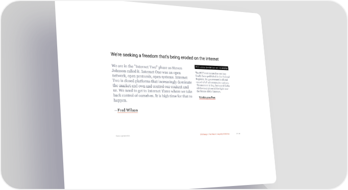 3/10/2018 2018 Design In Tech Report We're seeking a freedom that's being eroded on the Internet We are in the "Internet Two" phase as Steven FCC votes to remove net neutrality Johnson called it. Internet One was an open The FCC's net neutrality vote has network, open protocols, open systems. Internet finally been published in the Federal Register, the government's official Two is closed platforms that increasingly dominate record of all administrative actions. the market and own and control our content and The moment is key, because it kicks off the next phase of the fight over us. We need to get to Internet Three where we take the future of the Internet. back control of ourselves. It is high time for that to —Washington Post happen. —Fred Wilson Source: @swissmiss 2018 Design In Tech Report | Inequality & Skills Gap 67 / 90 http://jmmbp001.local:5757/?ckcachecontrol=1520689902#16 67/90