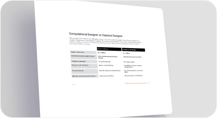 3/10/2018 2018 Design In Tech Report Computational Designer vs Classical Designer When people in the tech industry talk about “design,” they often make the mistake of not differentiating between classical designers and computational designers. The former kind of designer might craft a wooden chair for a home which is used by a few people; the latter kind of designer might craft an app for a smartphone which is used by hundreds of millions of people. Classical Design Computational Design Number of Active Users Few to Millions Few to Billions Time Needed to Deploy Completed Product Weeks to Months through Distribution Instantaneously Delivered Over the Net Channels “Perfection” is Achievable Yes There’s a final state. No It’s always evolving. Designer’s Level of Confidence Absolute, and Self-Validating Generally High, but Open to Analyzing Testing/Research Production Materials Paper, Wood, Metal, and Anything Physical Data, Models, Algorithms, and Anything Virtual Skills With Tools Are Generally Grounded In Hands and Laws of Physics Mind and Computer + Social Sciences Source: 2018 Design In Tech Report | Technology × Business × Design 13 / 90 http://jmmbp001.local:5757/?ckcachecontrol=1520689902#16 13/90