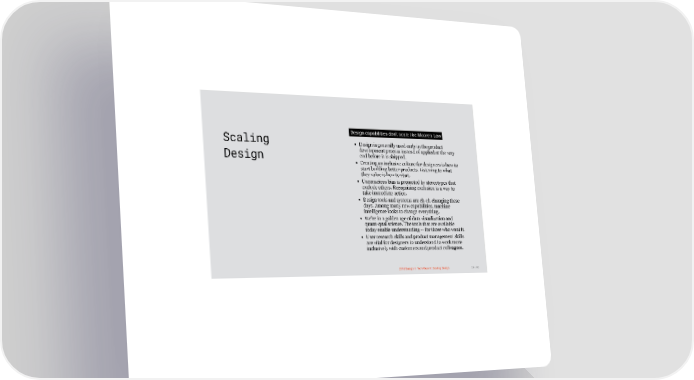 3/10/2018 2018 Design In Tech Report Scaling Design capabilities don't scale like Moore's Law Design is generally used early in the product development process instead of applied at the very Design end before it is shipped. Creating an inclusive culture for designers is how to start building better products. Listening to what they value is how to start. Unconscious bias is promoted by stereotypes that exclude others. Recognizing exclusion is a way to take immediate action. Design tools and systems are ch-ch-changing these days. Among many new capabilities, machine intelligence looks to change everything. We're in a golden age of data visualization and quant-qual science. The tools that are available today enable understanding -- for those who want it. User research skills and product management skills are vital for designers to understand to work more inclusively with customers and product colleagues. 2018 Design In Tech Report | Scaling Design 29 / 90 http://jmmbp001.local:5757/?ckcachecontrol=1520689902#16 29/90